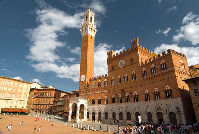 A XIII. századi varázslatot kereső turisták számára Siena az ideális hely: egy kis város nagy személyiséggel. Siena építészetének, kincseinek legnagyobb részét a Piazza del Campón tartotta fent. A tértől nem messze áll a Palazzo Pubblico, - Siena városháza már majdnem 800 éve – ahol a művészet- és történelemimádók megtekinthetnek egy XIV. századi freskógyűjteményt, például Simone Martini alkotásait is. A Torre Mangia csodálatos kilátást kínál a környező vidékre. Sienában sok borozó, étterem és butik áll rendelkezésünkre, ha enni vagy éppen vásárolni szeretnénk. Firenzétől kevesebb, mint egyórás vonatútra fekszik.