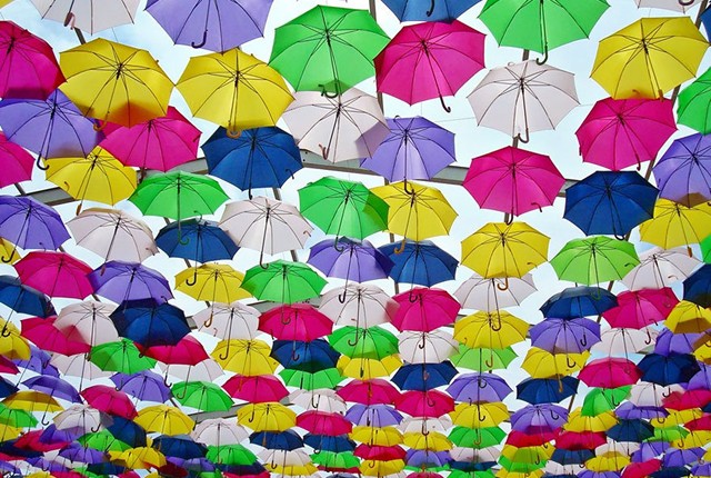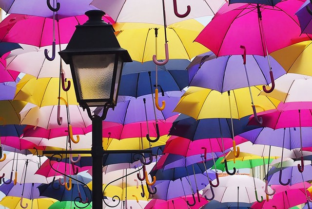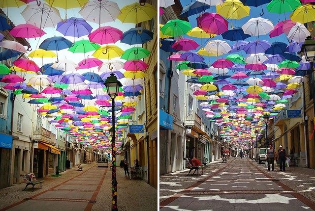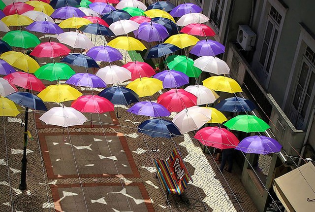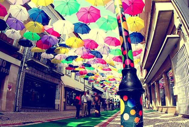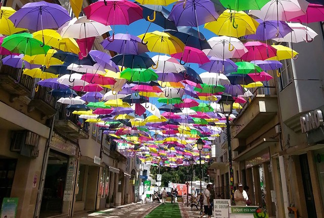 Minden júliusban az Águeda Művészeti Fesztivál részeként több száz esernyőt