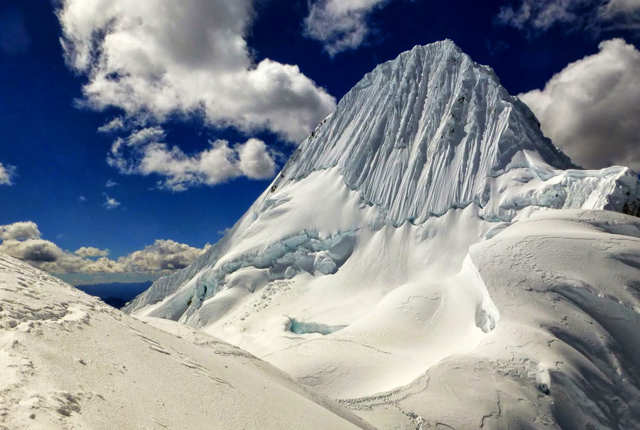 A perui Andokban, a Blanca-hegységben (Corillera Blanca) található Alpamayo majdnem tökéletes piramis alakjával lenyűgöző látvány. A hegy neve a kecsua föld (allpa) és folyó (mayu) szavakból ered, valószínűleg a hegyen látható jégformák után nevezték el. Már a megközelítése sem könnyű, egy másfél-kétnapos túrával érhetjük el, attól függően, honnan indulunk. Az Alpamyo több szavazáson is elnyerte a világ legszebb hegye címet.