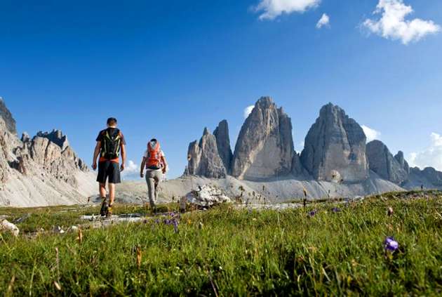 Az olaszországi Dolomitok szinte bármelyik csúcsa nevezhetne a 10-es listába, ha nem létezne a Tre Cime di Lavaredo vagy németül a Drei Zinnen nevű csúcscsoport. Az egyik legtöbbet fényképezett csúcsról van szó a Dolomitokban. Leglátványosabb arcát a Locatelli-menedékháztól nézve mutatja, ahová szerencsére a földi halandók is egy rövid, 1-2 órás túrával eljuthatnak, köszönhetően annak a magashegyi útnak, amit az Aurunzo-házig építettek. A szintemelkedés nagy részét így autóinkkal tehetjük meg. Ha elég bátrak vagyunk, akkor innen akár egy 4-5 órás túrával az egész hegytömböt is megkerülhetjük. Véleményünk szerint érdemes rászánni egy napot, ha erre járunk.