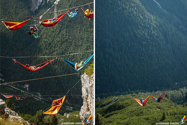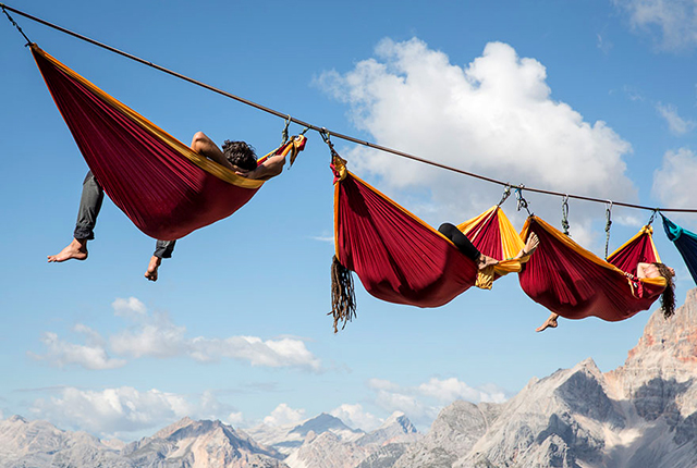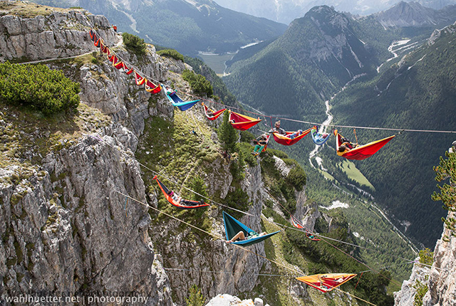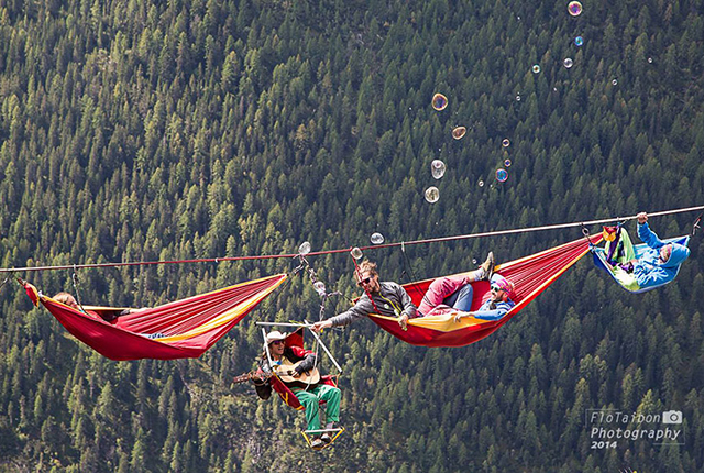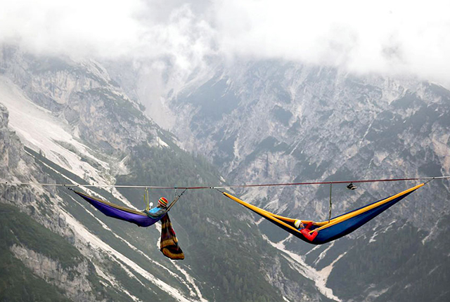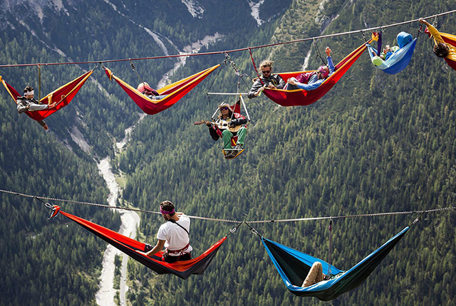 Highline Meeting. A résztvevők az idejük nagy részét a levegőben töltik, melyhez