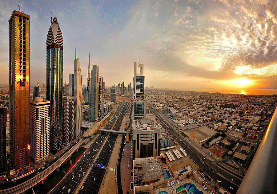 Sheikh Zayed-út a főútvonal, amelyen áthaladva Dubai modern belvárosi üzleti negyede található meg. Ez a széles, nyolc sávos autópálya hatalmas üveg, króm és acél felhőkarcolókkal szegélyezett a hossza mentén. Főbb látnivalók az út mentén a körforgalom és az első kereszteződés közötti szakaszon találhatók. A Courtyard-Galériának kiváló állandó gyűjteménye van, amelynek középpontjában a kortárs arab művészet áll. A Dubai World Trade-toronynak van egy kilátója a legfelső emeleten, amely gyönyörű panorámát kínál. Az Arany és Gyémánt Park és Múzeum egy „mindent egy helyen” üzlet, az ékszerek szerelmeseinek, amely 118 gyártó és 30 kiskereskedő termékeit mutatja be egy fedél alatt. A múzeum bemutatja az arab ékszerkészítés történetét is és egyben rövid túrákat kínál a gyártó üzemben.