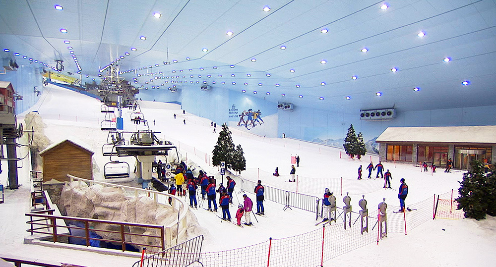 Emirates-bevásárlóközpont a város egyik leghíresebb bevásárlóközpontja a látványos (és szürreális) Dubai fedett sí csarnokával, a létesítmény belsejében. A fedett sípálya mellett libegő és egy pingvineknek fenntartott elzárt rész is található. A hőmérséklet folyamatosan -4 Celsius fok. A bevásárlóközpontban van egy mozi komplexum és egy családi szórakoztató központ is, amely kikapcsolódási lehetőséget nyújt kicsiknek és nagyoknak egyaránt. A vásárlási lehetőségek határtalanok, ugyanúgy, mint az étkezési lehetőségek, hiszen mindenféle világkonyha fellelhető a központban.