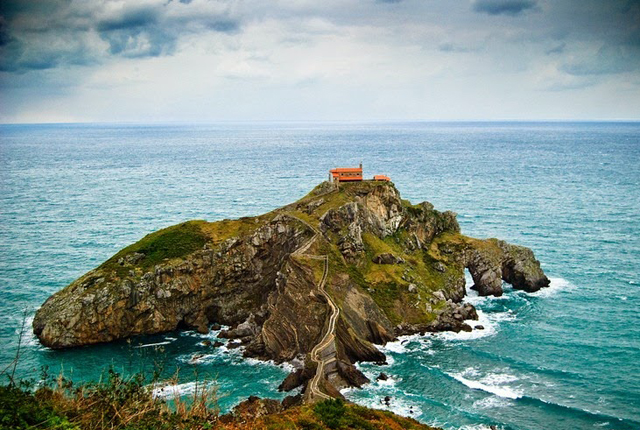 Gaztelugatxe egy kis sziget a Vizcayai-öbölben, Spanyolország északi