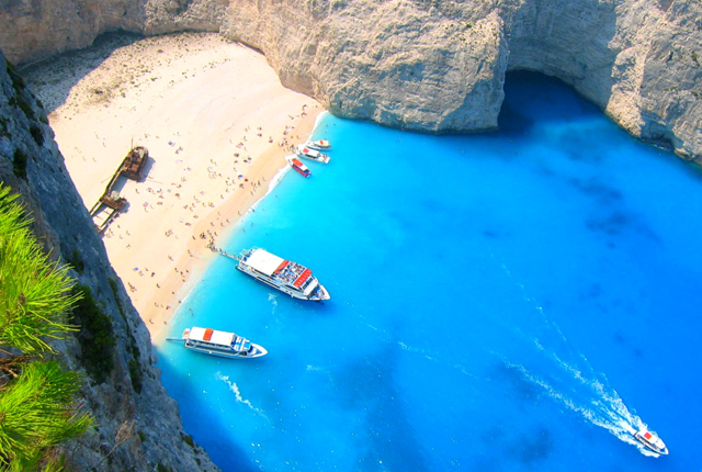 Navagio Beach egy olyan elszigetelt homokos öböl Zakynthos szigetén, melynek megközelítése csak hajóval lehetséges. A mára már Görögország védjegyévé vált strand igen gyakran szerepel képeslapokon. Egy állítólag csempészhajóként használt bárka romjai is megtalálhatóak a parton, melyet hatalmas mészkősziklák ölelnek körbe. A mélykék, tiszta tengervíz és a part különleges hangulata turisták ezreit vonzza minden évben.