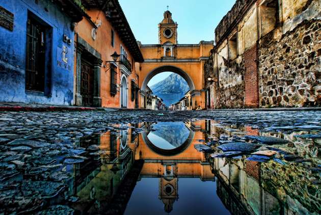 Három impozáns vulkánjával szemben, Guatemala központi fennsíkján egy gyönyörű, régi, gyarmati város, Antigua pihen. Az ország egyik legjelentősebb turisztikai célpontjában rengeteg látnivalót és kikapcsolódási lehetőséget találhatunk. Igazán megnyugtató és szép este végigsétálni a városközpontban, mely rendkívül gazdag látványos építészeti elemekben, valamint megcsodálni a Szent Katalin boltívet éjszakai kivilágításban.