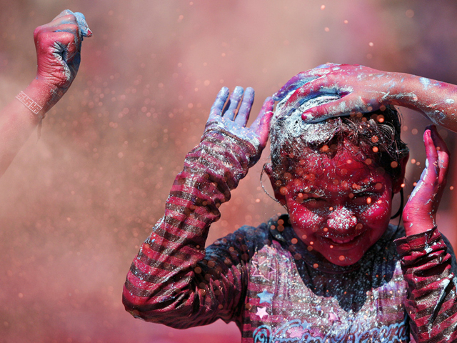 barátok körében zajlik. A nap kezdetén színes festékporokat szórnak, valamint