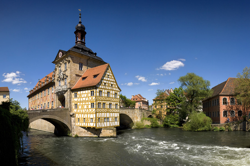 Bamberg elsősorban a gyönyörű építészetéről ismert, amely különösen a régi városközpontot jellemzi. Két látnivaló is figyelmet érdemel a városban, az egyik az óváros Dómjának lovas szobra (Bambergi lovas), amely egy fiatal ismeretlen lovast ábrázol. A második az „Altes Rathaus”, amely épület szobái a folyó középén, a víz szintje felett találhatóak. Különleges élményt kínál az itt megrendezett hat napos népzenei fesztivál is, amely „Sandkerwa” néven ismert. Több százezren látogatják meg Bamberg városát minden augusztusban, amely kiváló ételeket, bort, sört, és helyi sportokat kínál az idelátogatóknak, akik kipróbálhatják a helyi népi játékot is a vízi párviadalt.