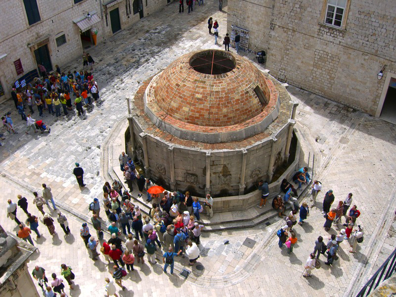 A XV. század során Dubrovnik város lépéseket tett annak érdekében, hogy a város friss vízellátását egy vízvezeték rendszer kiépítésével biztosítsa, amely a közeli Šumetben található forráshoz csatlakozik. Onofrio della Cava Giordano építőmestert bízták meg a feladattal, és két szökőkút viseli az építész nevét, amelyek a vízvezeték-rendszer végpontjait jelölik. A kettő közül a lenyűgözőbb, a 16-oldalú Nagy Onofrio-kút, amely a Stradun-on található szemben a Szent Megváltó-templommal. A szökőkút tetején lévő nagy kupolát a milánói művész, Peta Martinov készítette, és a kút azóta is biztosítja a hideg és tiszta vizet a szomjas látogatóknak.