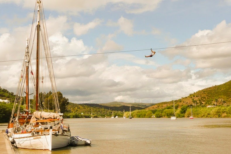 Első pillantásra csak egy acél összekötő kábel látszik, amely összeköti az andalúziai Sanlucar de Guadiana-t Spanyolországban a portugál Alcoutim Algarve-val. A több mint 720 méter hosszú drótkötélpálya az egyetlen olyan pálya a világon, amelyen a turisták határt átlépve a Guadiana-folyó felett, mintegy 70 - 80 km-es óránkénti sebességgel jutnak át. Az indulópontnak a Sanlúcar de Guadiana vár ad otthont, mintegy 100 méter magasan a folyó felett.